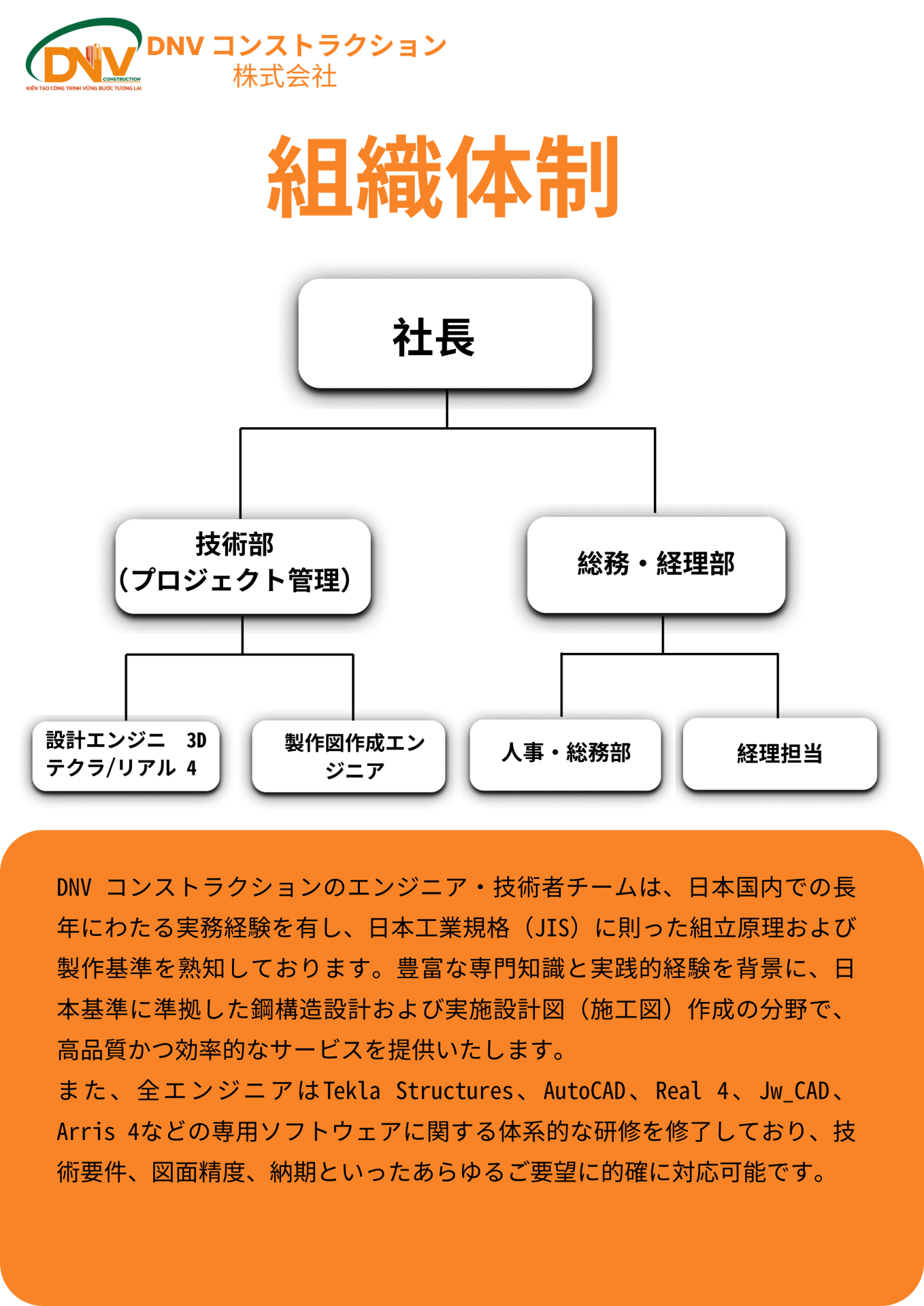 新規設計受託および工場・産業施設・倉庫・プレハブ鉄骨造等向け鋼構造加工用詳細図面作成。